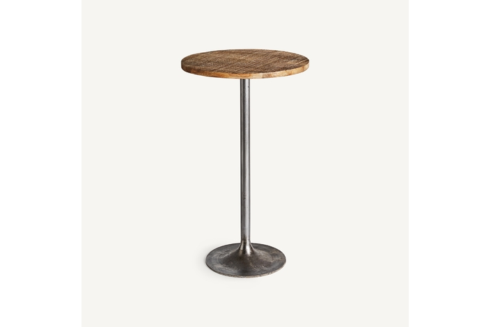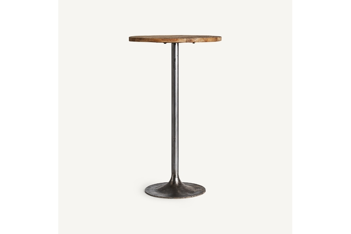 Mesa bar tyler, en color gris/natural, de estilo vintage. Fabricado en hierro, combinado con madera de mango. Producto desmontable.