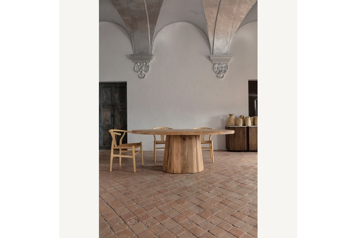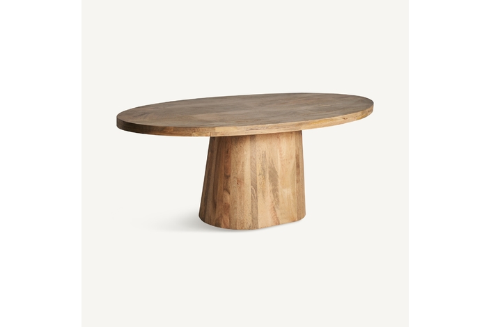 La Mesa Comedor Mersch de VICAL Home es una declaración de estilo con su diseño ovalado y pata central, ofreciendo un equilibrio entre arte y funcionalidad. Medidas de 200x100x76cm en madera de mango natural permiten que esta mesa sea el centro de atención y comodidad en cualquier encuentro.