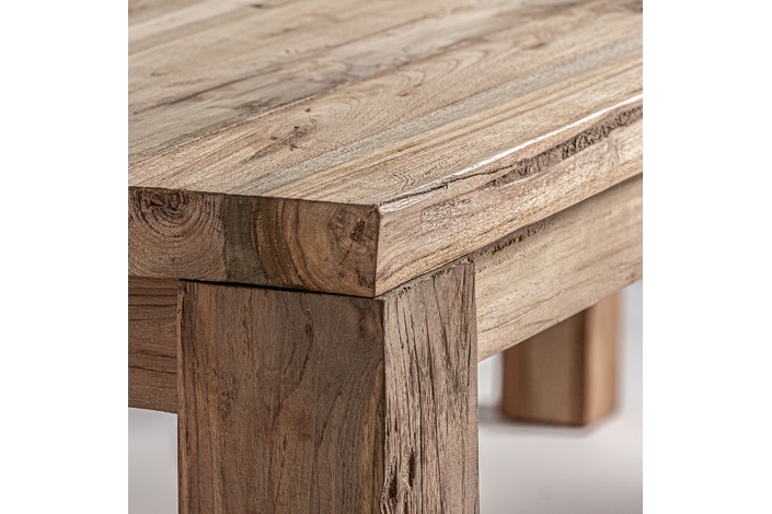 Mesa comedor lux, en color marrón, de estilo colonial. Fabricado en madera de teka reciclada. Producto desmontable.