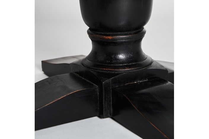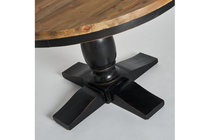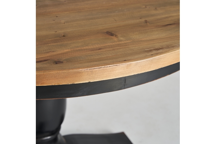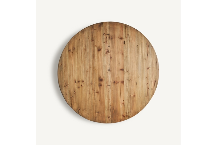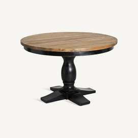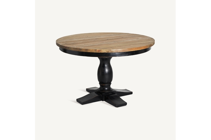Exclusiva y elegante, la Mesa de Comedor Zenica de VICAL Home, de 120x120x75cm, presenta un diseño redondo con un monopié negro, ofreciendo un equilibrio perfecto entre modernidad y robustez. Fabricada en madera de olmo, esta mesa redonda de comedor monopié negro se convierte en el centro de todas las miradas.