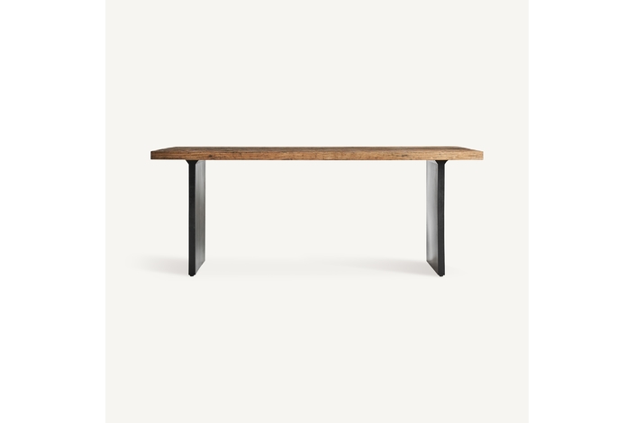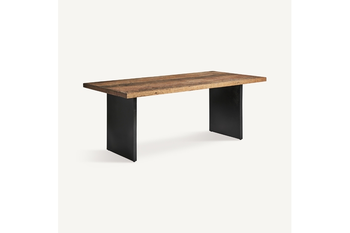 La Mesa de Comedor Uzor de VICAL Home destaca por su diseño audaz y contemporáneo. Con medidas de 200x100x79cm, esta mesa de comedor combina la solidez de la madera de Shorea con la fuerza industrial del hierro, todo en una paleta de colores negro y natural que añade una presencia elegante a cualquier comedor.