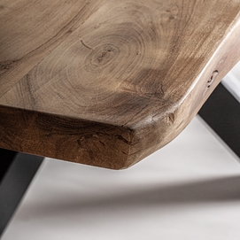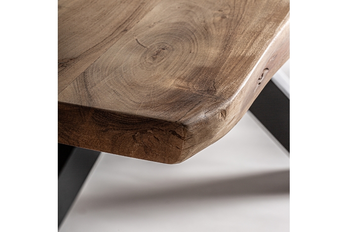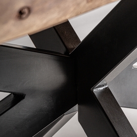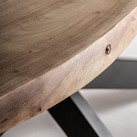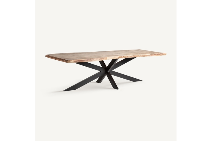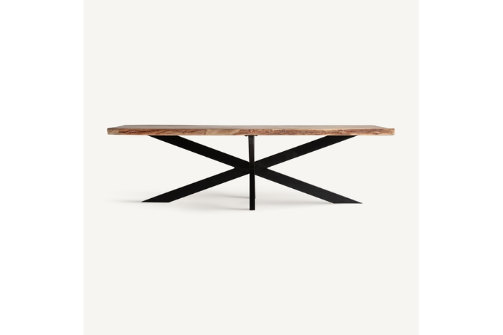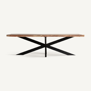 Mesa comedor viborg, en color negro/marrón, de estilo industrial. Fabricado en madera de acacia, combinado con hierro. Producto desmontable.