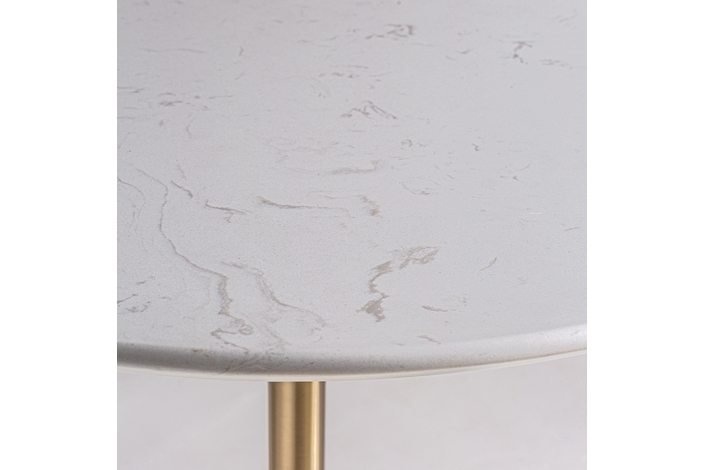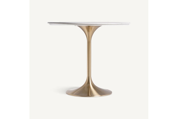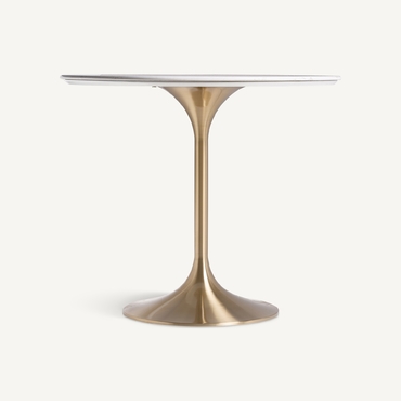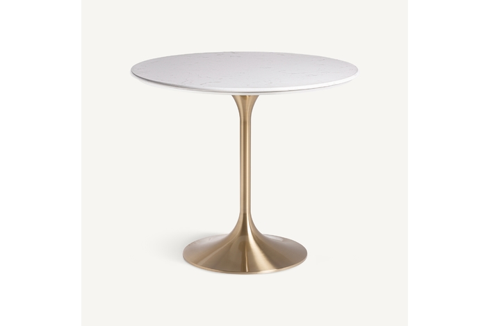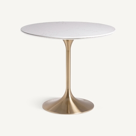Mesa comedor kelheim, en color blanco/oro, de estilo art deco. Fabricado en mármol, combinado con acero. Producto desmontable.