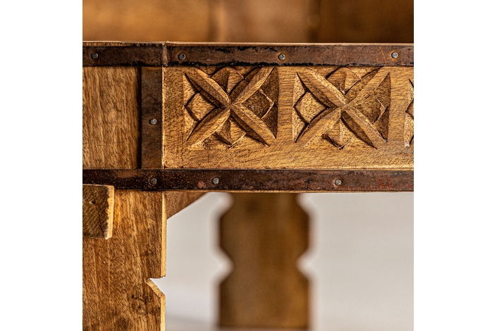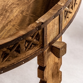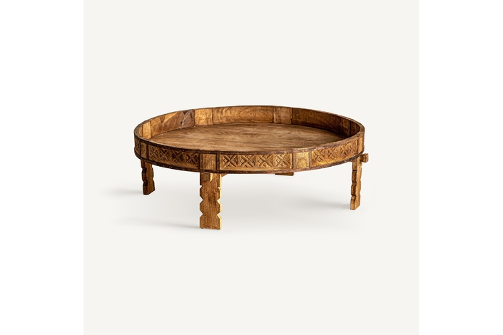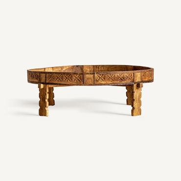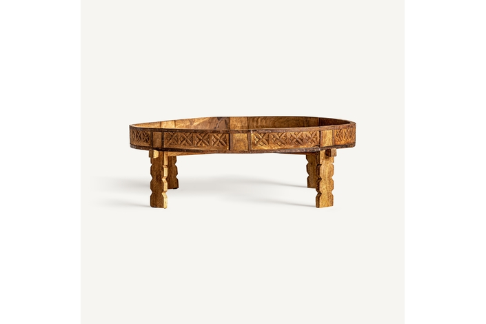 Mesa de centro badai, en color marrón tallado, de estilo étnico. Fabricado en madera de mango.