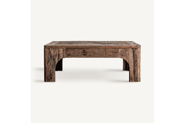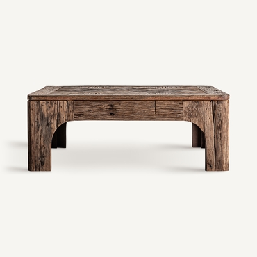Mesa de centro samsun, en color marrón, de estilo colonial. Fabricado en madera recuperada.