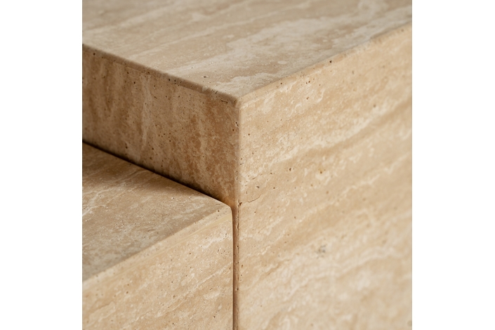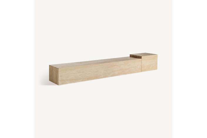 Mueble tv thiennes, en color marrón claro, de estilo art deco. Fabricado en travertino.
