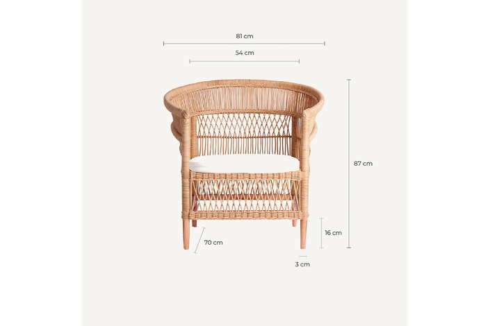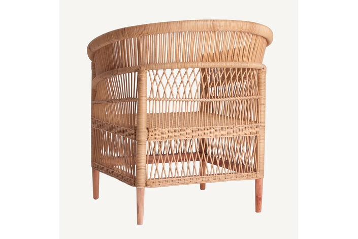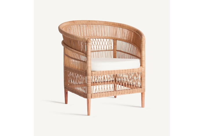 Sillón elna, en color marrón, de estilo contemporáneo. Fabricado en ratán, combinado con algodón y espuma. Producto desenfundable.