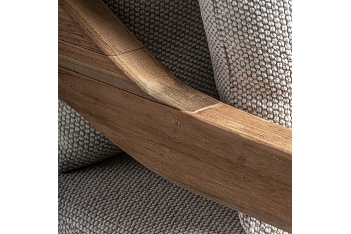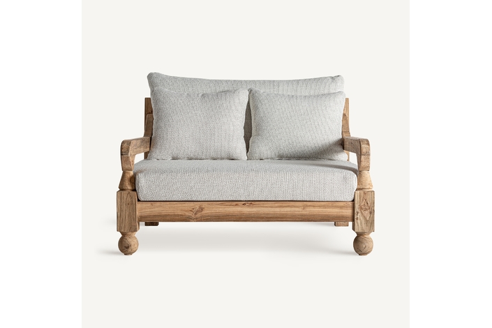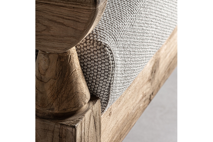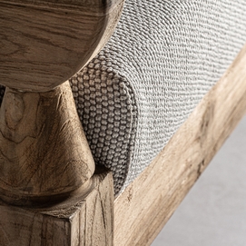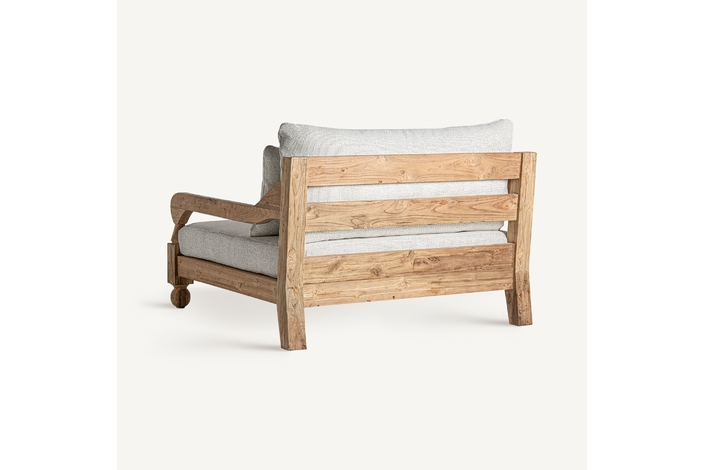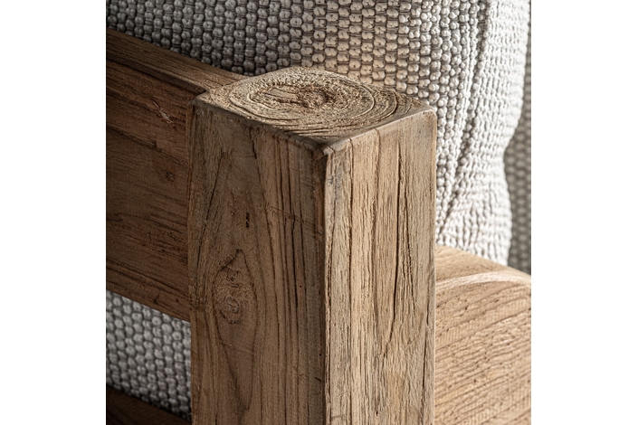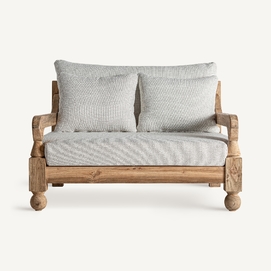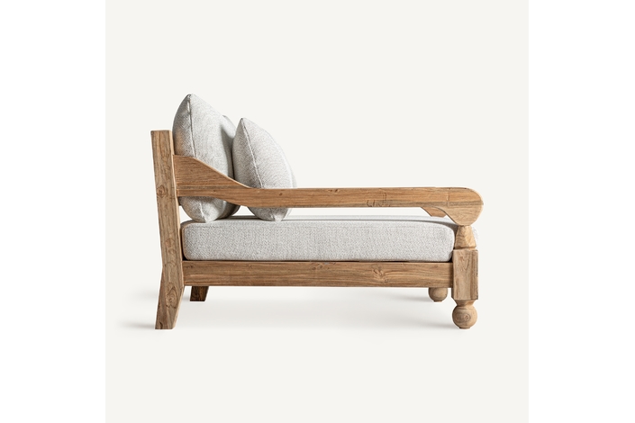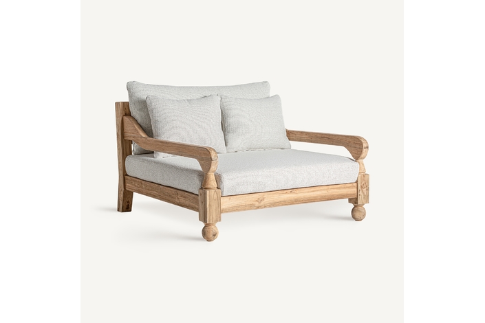Sofá jodphur, en color marrón natural, de estilo colonial. Fabricado en madera de teka reciclada, combinado con polipropileno reciclado y espuma. Producto desmontable, desenfundable. Compatible con: 34009,34832.