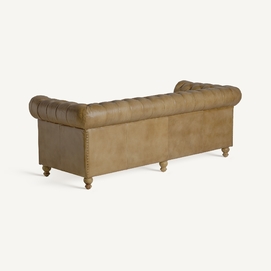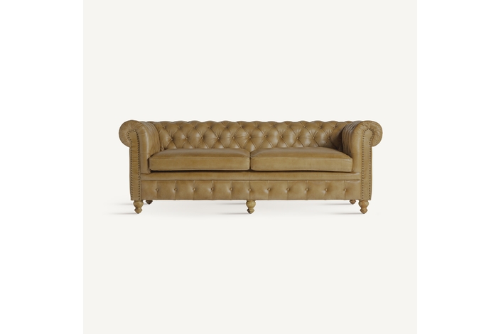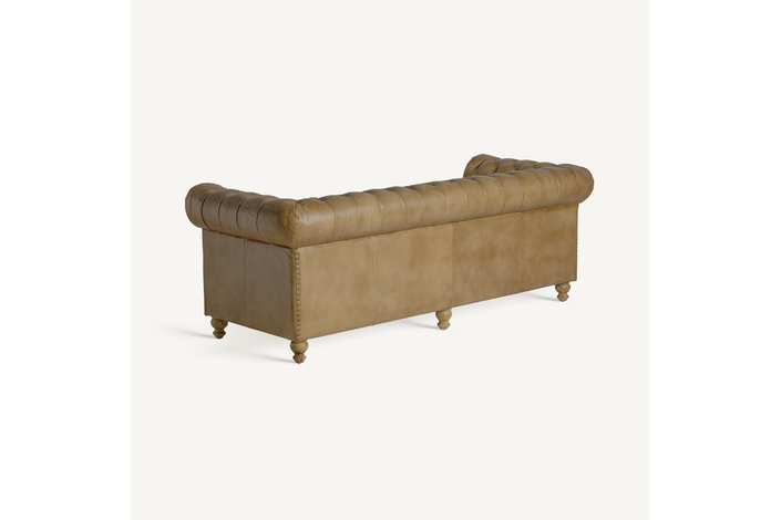 Redefine tu espacio con el Sofá Chesterfield Elkins de VICAL, una obra maestra de la artesanía clásica con un giro contemporáneo. Este sofá chester piel de tres plazas, con dimensiones de 215x82x75cm, está envuelto en una piel marrón de alta calidad, ofreciendo una experiencia de asiento lujosa y una apariencia robusta. El marco de madera de pino proporciona una estructura fuerte y duradera, mientras que la piel añade un nivel de elegancia y sofisticación. El diseño atemporal del chesterfield, conocido por su acolchado y sus brazos enrollados, se actualiza aquí para adaptarse a interiores modernos o clásicos, brindando un confort excepcional y un estilo inconfundible.