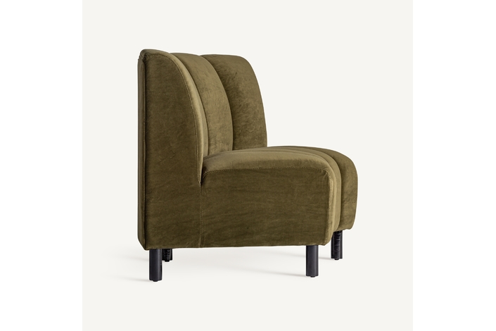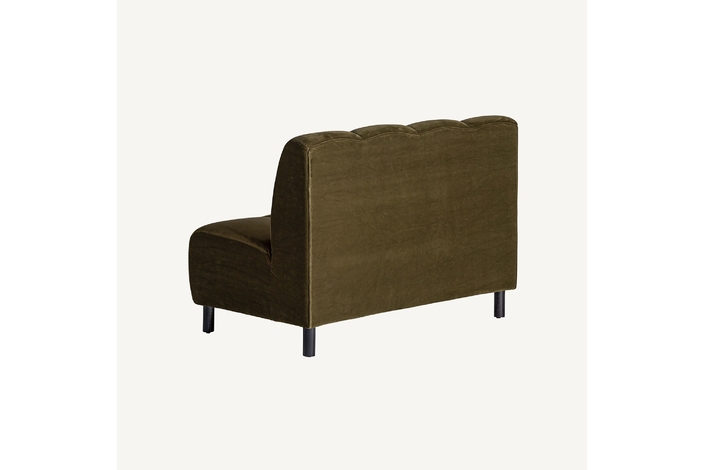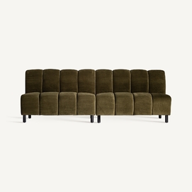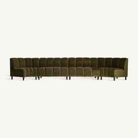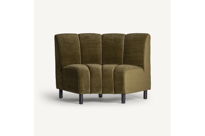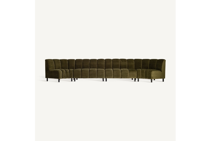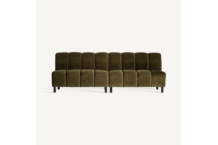 Sofá modular shul, en color verde, de estilo art deco. Fabricado en terciopelo, combinado con espuma.