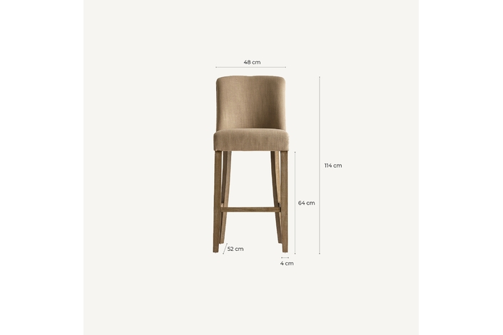 Sumérgete en la comodidad rústica con el Taburete Aspach de VICAL. Este taburete alto tapizado en un acogedor poliéster de color arena combina a la perfección con la resistente madera de pino, ofreciendo un asiento confortable y duradero. Con unas dimensiones de 48x52x114cm, es ideal tanto para la barra de un hogar como para la de un establecimiento con estilo rústico o campestre. La espuma de alta densidad asegura una sentada cómoda, mientras que su diseño eleva la experiencia estética del espacio. Ya sea que estés disfrutando de un café matutino o de una velada con amigos, el Taburete Aspach es la elección perfecta para quienes valoran tanto la funcionalidad como el diseño.