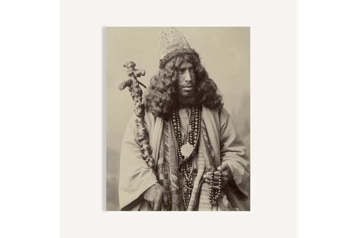 Lienzo rectangular ureo, en color crema impreso, de estilo étnico. Fabricado en lienzo. Producto desmontable.