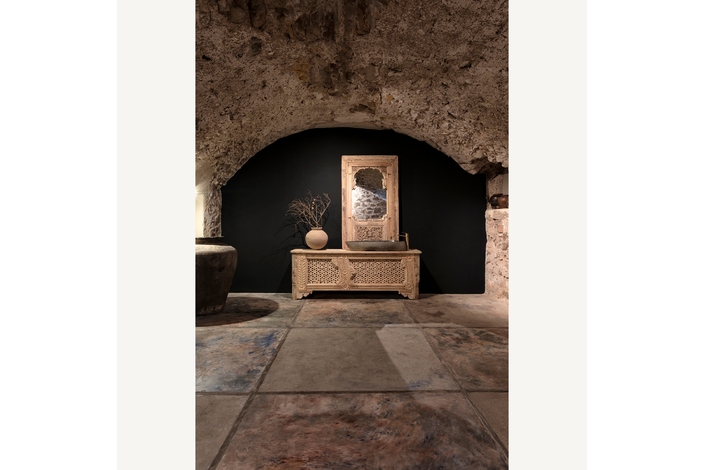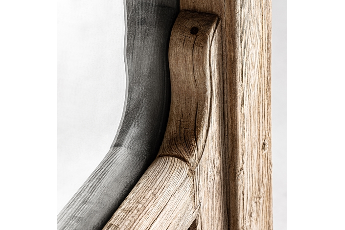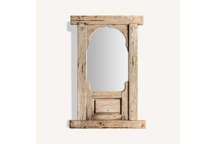 Espejo argeen, en color marrón envejecido, de estilo étnico. Fabricado en madera de teka, combinado con espejo.
