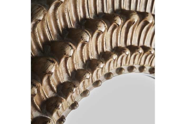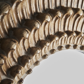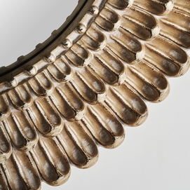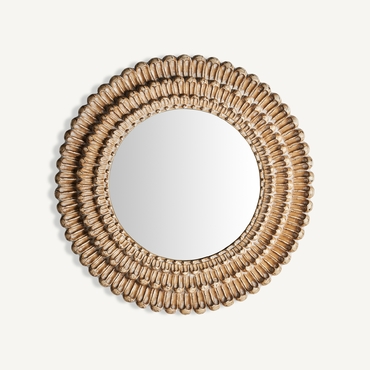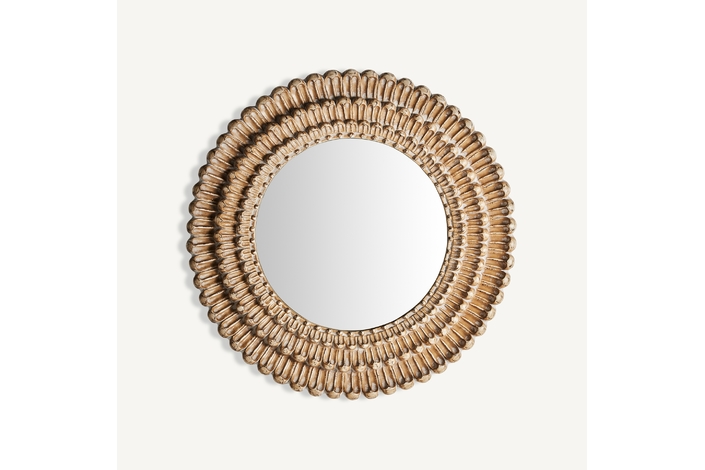 Espejo redondo, en color oro decapado, de estilo art deco. Fabricado en espejo.