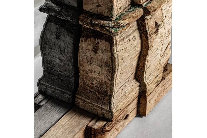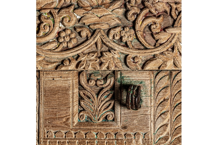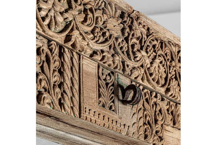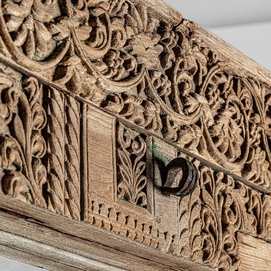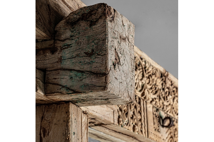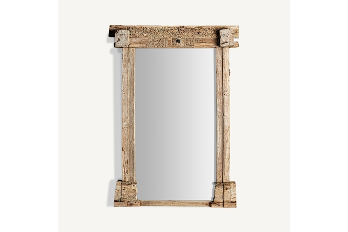 Espejo argeen, en color marrón envejecido, de estilo étnico. Fabricado en madera de teka, combinado con espejo.
