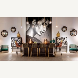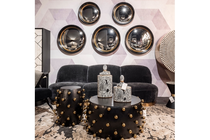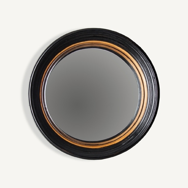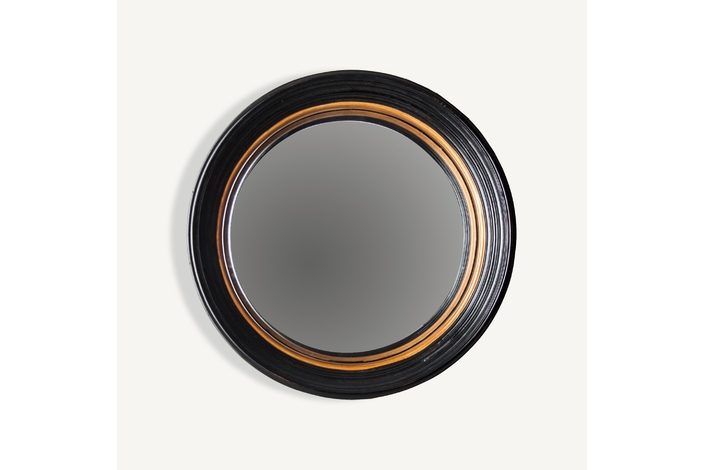 Espejo haner, en color negro/oro, de estilo art deco. Fabricado en resina.