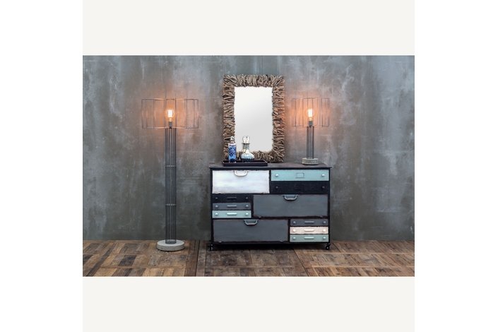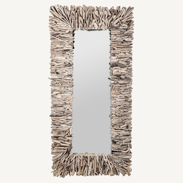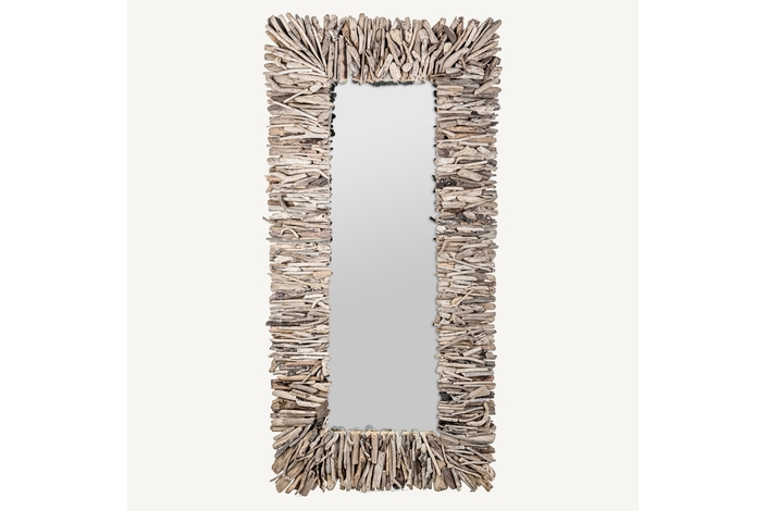 Espejo rectangular varverg, en color natural, de estilo étnico. Fabricado en madera tropical, combinado con espejo.