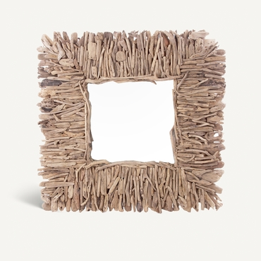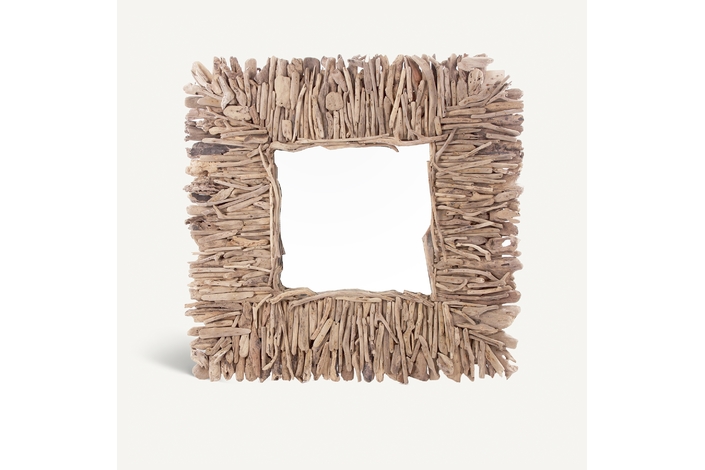Espejo cuadrado varverg, en color marrón envejecido, de estilo étnico. Fabricado en madera mindi, combinado con espejo.
