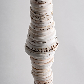 Figura decorativa, en color blanco roto, de estilo étnico. Fabricado en hierro, combinado con concha.