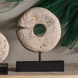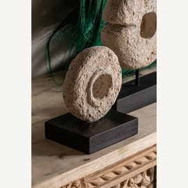 Figura decorativa, en color blanco/negro, de estilo contemporáneo. Fabricado en piedra, combinado con madera tropical.