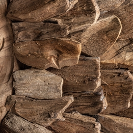 Figura decorativa, en color marrón envejecido, de estilo étnico. Fabricado en madera de teka.