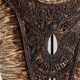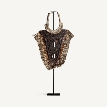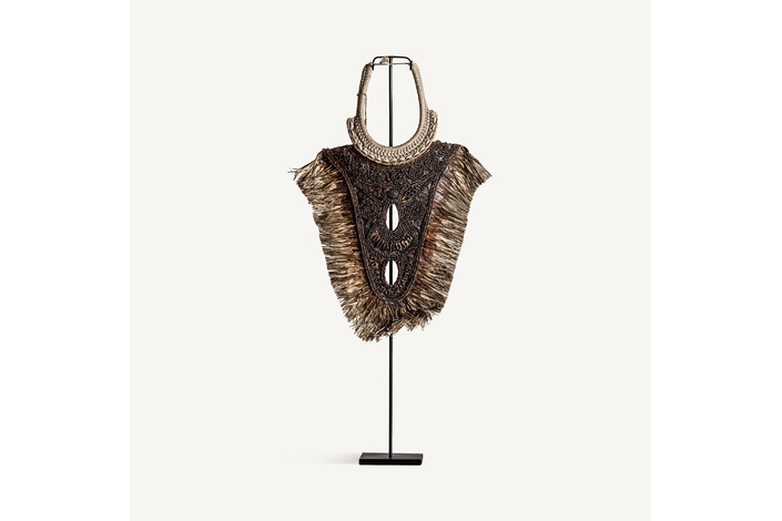 Figura decorativa, en color marrón, de estilo étnico. Fabricado en fibra natural, combinado con concha. Producto desmontable.