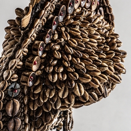 Figura decorativa, en color marrón, de estilo étnico. Fabricado en fibra natural, combinado con concha. Producto desmontable.
