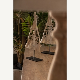 Figura decorativa, en color blanco roto, de estilo étnico. Fabricado en madera tropical, combinado con hierro.