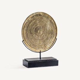 Figura, en color oro viejo, de estilo contemporáneo. Fabricado en bronce, combinado con hierro.