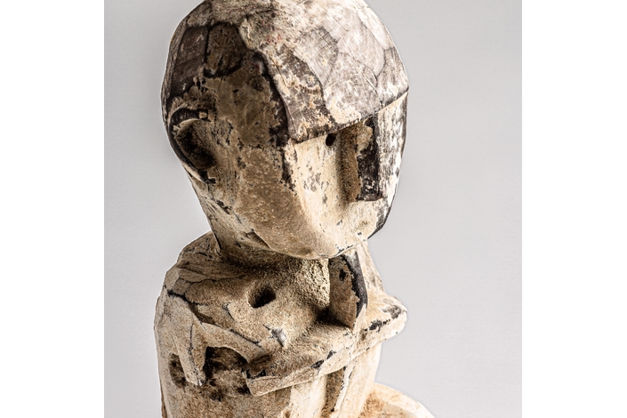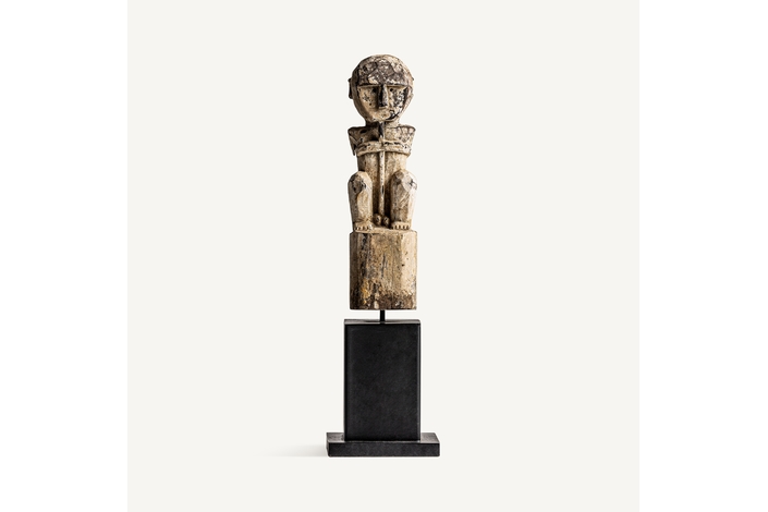Escultura, en color negro/natural envejecido, de estilo oriental. Fabricado en madera de mango.