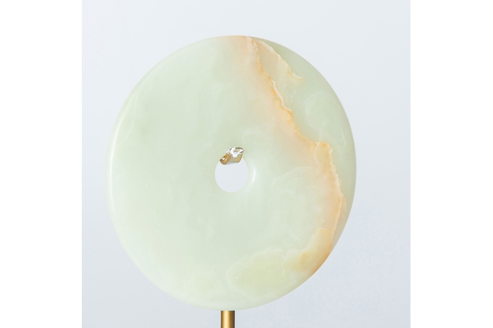 Figura jade, en color oro viejo, de estilo nórdico. Fabricado en hierro. Jade natural. Producto desmontable.