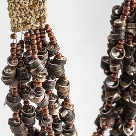 Figura collar, en color marrón, de estilo étnico. Fabricado en hierro, combinado con concha.