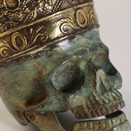 Calavera, en color verde/oro envejecido, de estilo art deco. Fabricado en bronce.