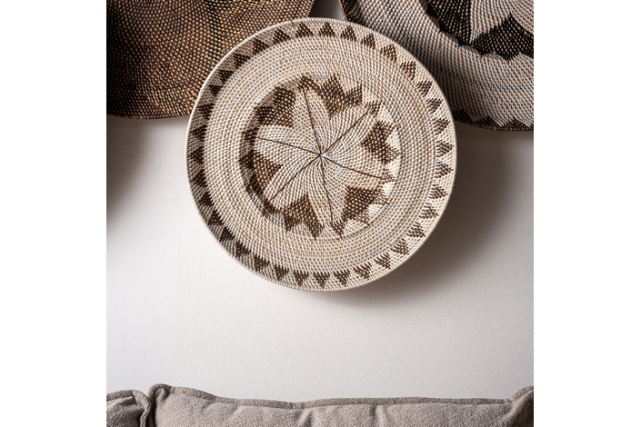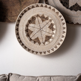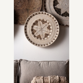 Panel decorativo zirba, en color marrón/beige, de estilo étnico. Fabricado en ratán.