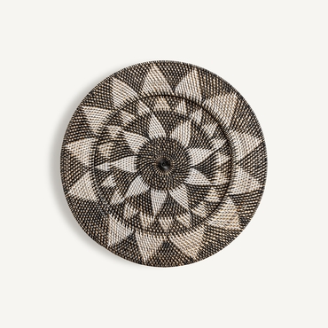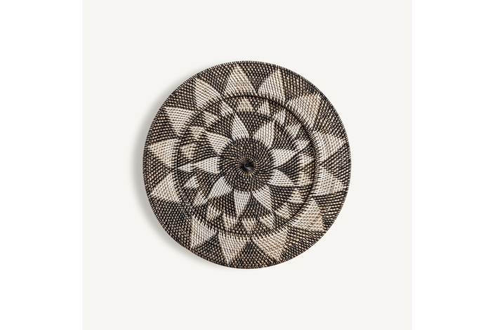 Panel decorativo zirba, en color marrón/beige, de estilo étnico. Fabricado en ratán.