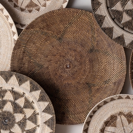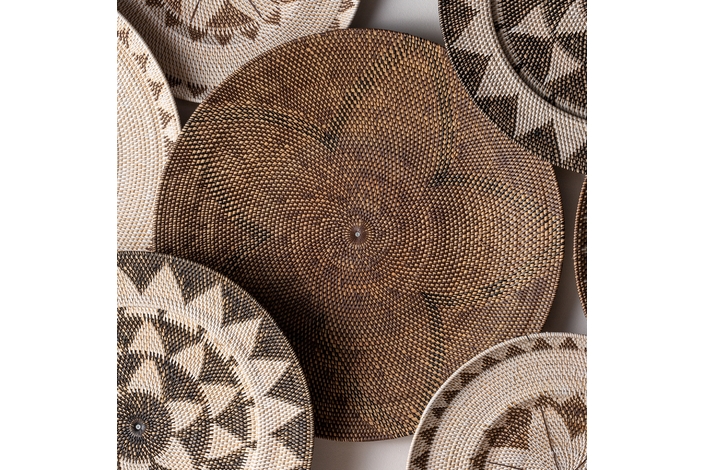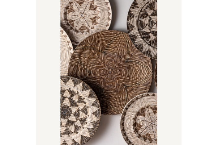 Panel decorativo zirba, en color marrón, de estilo étnico. Fabricado en ratán.