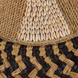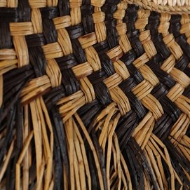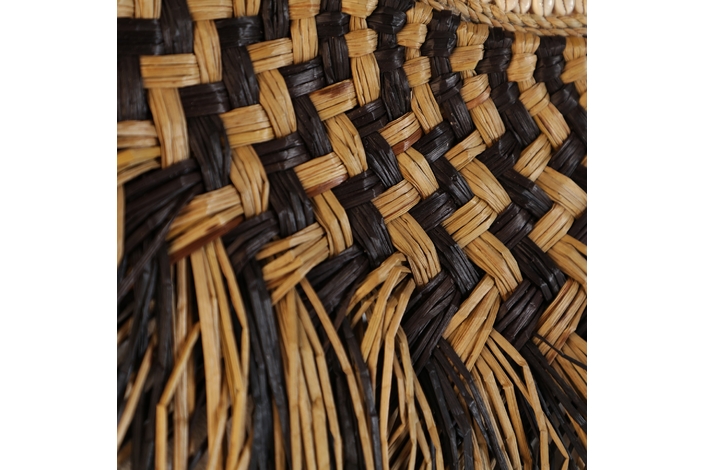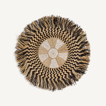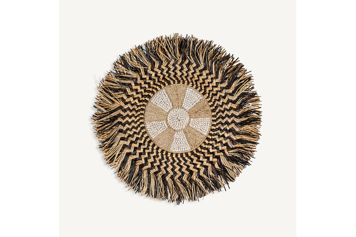 Panel decorativo, en color marrón, de estilo boho. Fabricado en rafia.