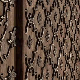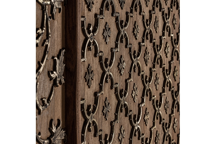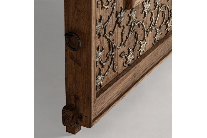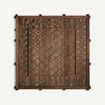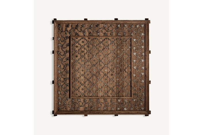 Panel decorativo, en color marrón envejecido, de estilo étnico. Fabricado en madera de mango.