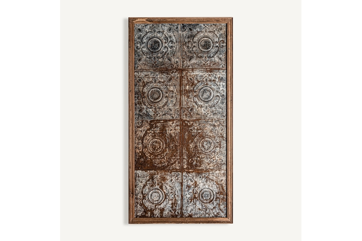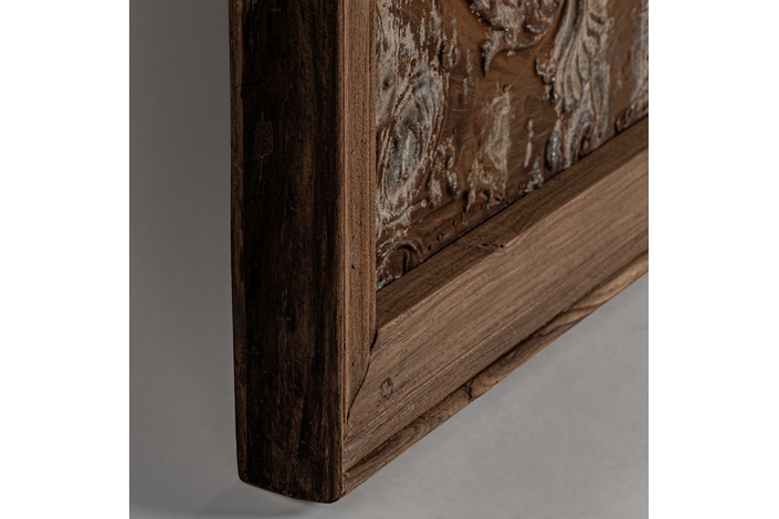 Panel decorativo, en color marrón envejecido, de estilo étnico. Fabricado en madera de mango.