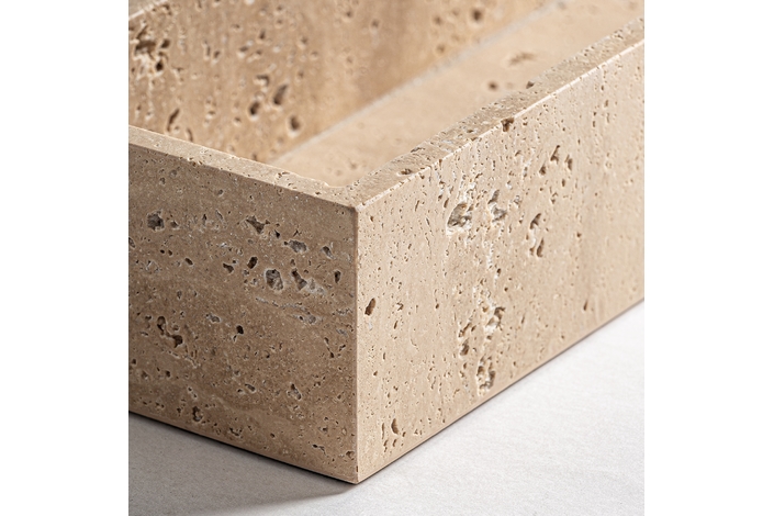 Bandeja rectangular tetbury, en color crema, de estilo art deco. Fabricado en mármol, combinado con sin.