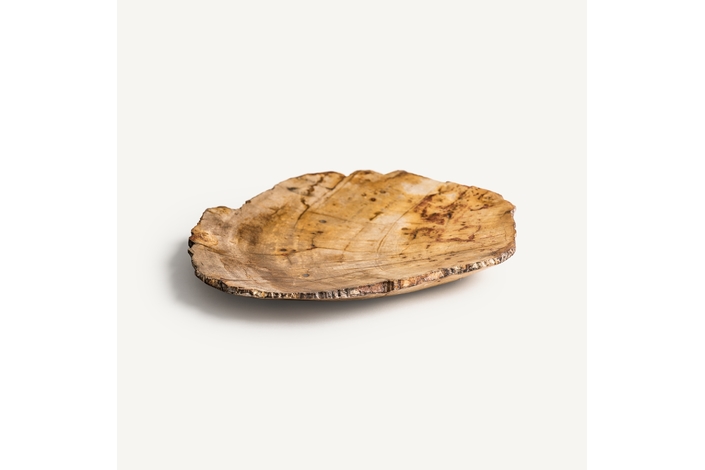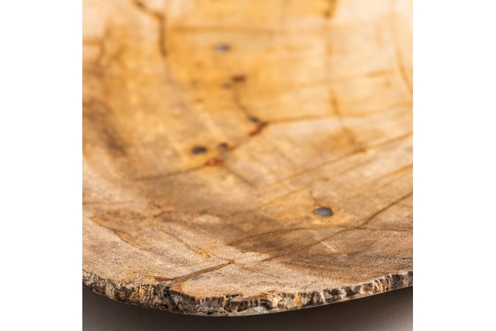 Centro ikuah, en color marrón, de estilo étnico. Fabricado en madera fosilizada.