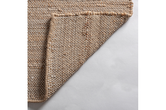 Alfombra zalika, en color tonos en marrón, de estilo boho. Fabricado en yute, combinado con algodón.