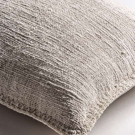 Cojín clancy, en color blanco roto, de estilo provenzal. Fabricado en algodón, combinado con poliéster.