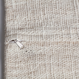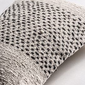 Cojín clancy, en color blanco roto, de estilo provenzal. Fabricado en algodón, combinado con poliéster.