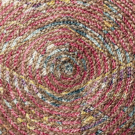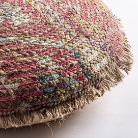 Cojín myla, en color rojo bordado, de estilo vintage. Fabricado en yute, combinado con algodón y poliéster.