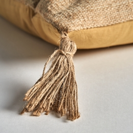Cojín cuadrada elgin, en color marrón, de estilo vintage. Fabricado en yute. Producto desenfundable.