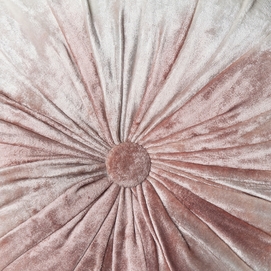Cojín redondo nilea, en color blanco/rosa, de estilo kitsh. Fabricado en algodón, combinado con viscosa. 65% viscosa + 35% algodón.