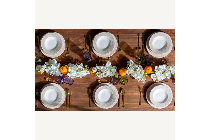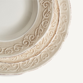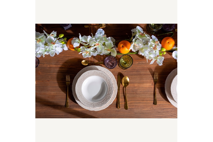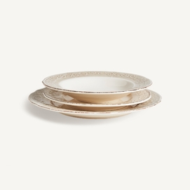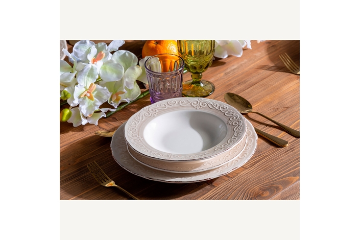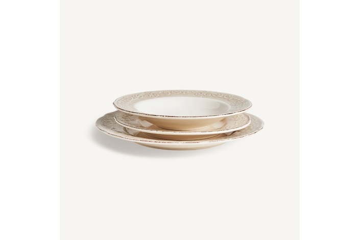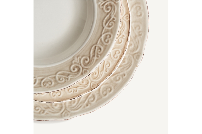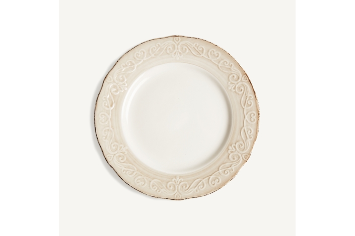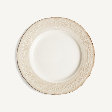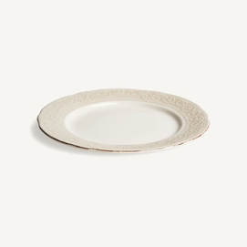 Plato alka, en color blanco, de estilo shabby chic. Fabricado en cerámica.