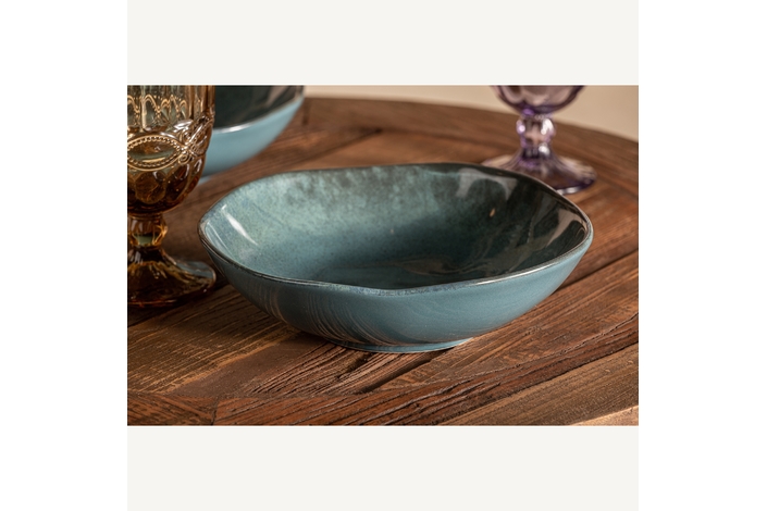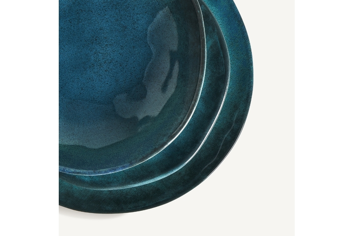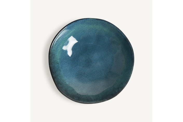 Plato irenka, en color azul, de estilo shabby chic. Fabricado en cerámica.
