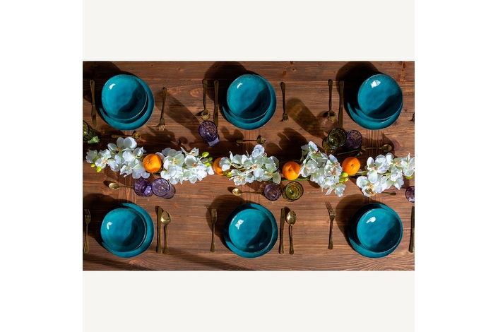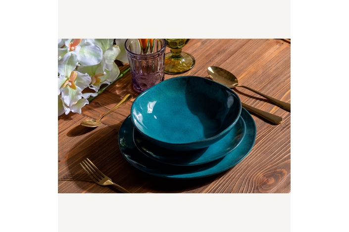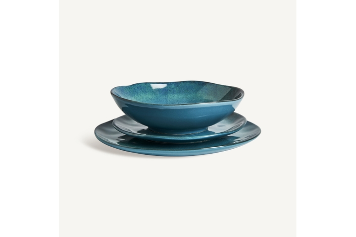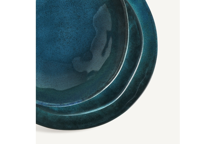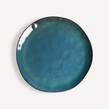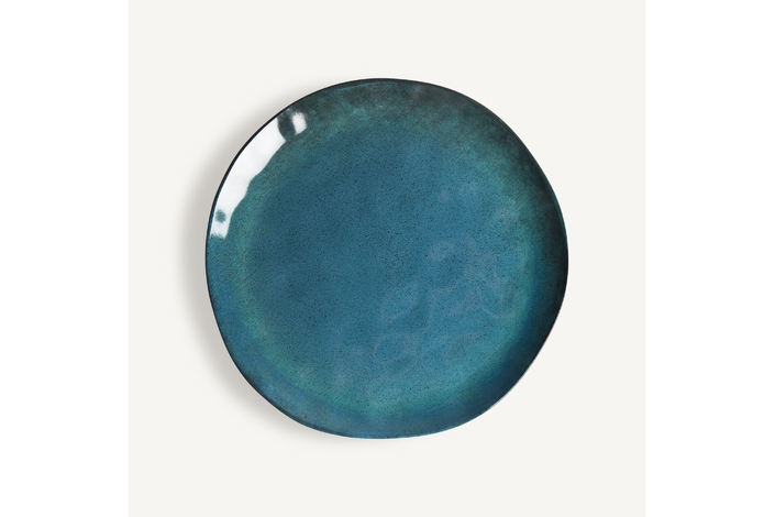Plato irenka, en color azul, de estilo shabby chic. Fabricado en cerámica.